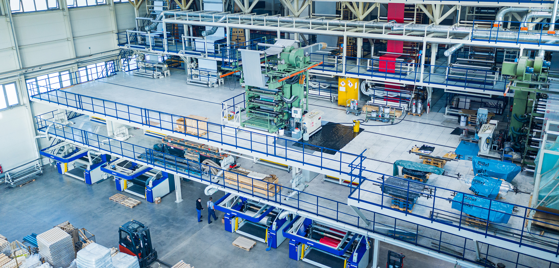 Das Polyethylen-Recyclat wird im nächsten Schritt auf den Extrusionsanlagen zu Folien für verschiedene Endanwendungen in unterschiedlichen Folienformaten weiterverarbeitet. Plasta setzt dafür seit 2017 unter anderem auf fünf Maschinen von Hosokawa Alpine: Drei 3-Schicht-Anlagen, eine 5-Schicht-Anlage sowie eine Monoanlage mit Liegenbreiten von 1800 bis 2300 mm stehen bereit; eine weitere Monoanlage ist bereits bestellt. „Bei unseren Mehrschichtanlagen mit Hochleistungsextrudern profitieren die Kunden von sehr flexiblen Produktionsmöglichkeiten für vielfältige Materialkombinationen. Die optimale Kühlung der Folienblase und die Versorgung der Anlage mit kalter Schmelze sorgen für einen effizienten und stabilen Produktionsprozess. Beim Folienwickler hat sich Plasta jeweils für eine Doppelstellenwickler entschieden“, erklärt Konstantin Klein.