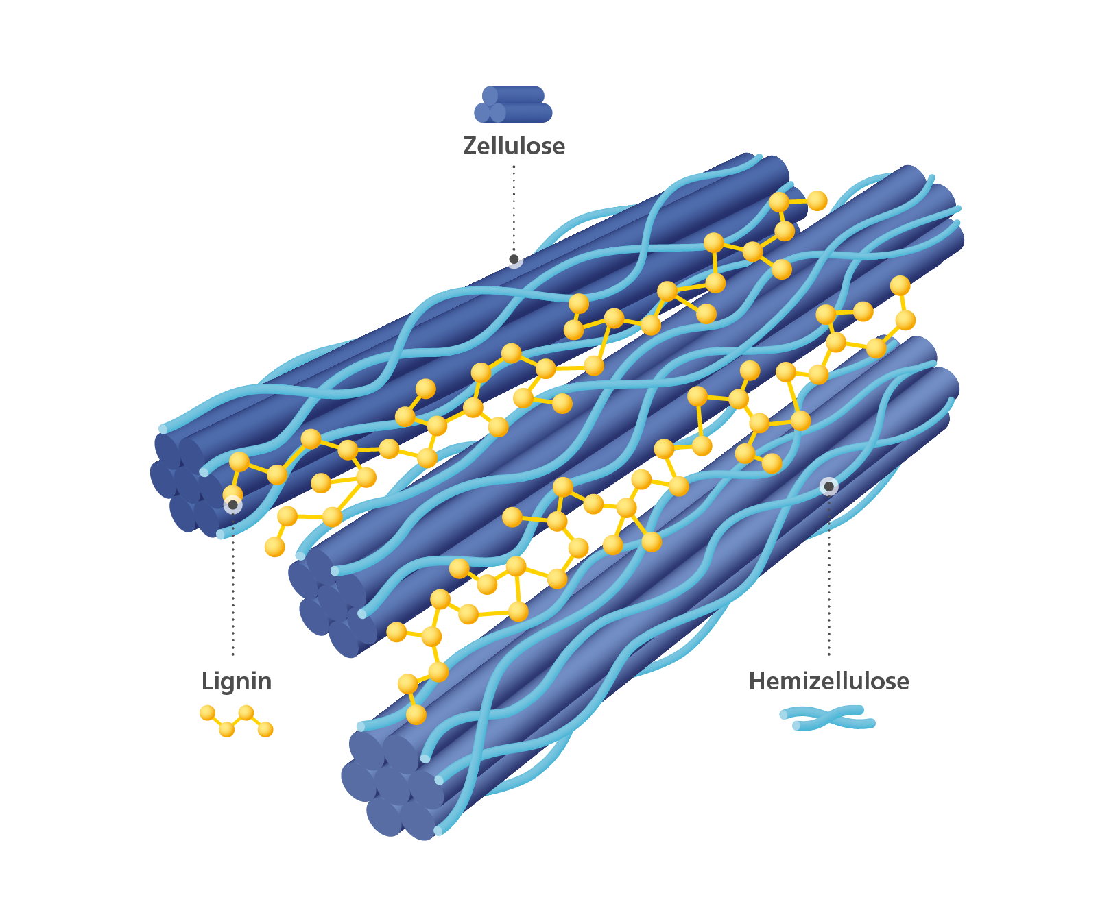Lignin ist ein organisches Polymer und neben Cellulose und Hemicellulose ein Bestandteil von Holz. Hier wirkt es sich auf die Verholzung der Zelle sowie auf die Druckfestigkeit und Haltbarkeit des Pflanzengewebes aus. Insgesamt macht Lignin etwa 20 bis 30 Prozent der Trockenmasse von verholzenden Pflanzen aus. Bisher galt dieser natürliche Rohstoff als Nebenprodukt, das bei der Herstellung von Zellstoff oder Bioethanol anfällt und wurde bisher kaum industriell genutzt. Tatsächlich ist Lignin vielseitig und kann für die verschiedensten Endprodukte - von Batterien bis hin zu Kosmetika - verwendet werden.