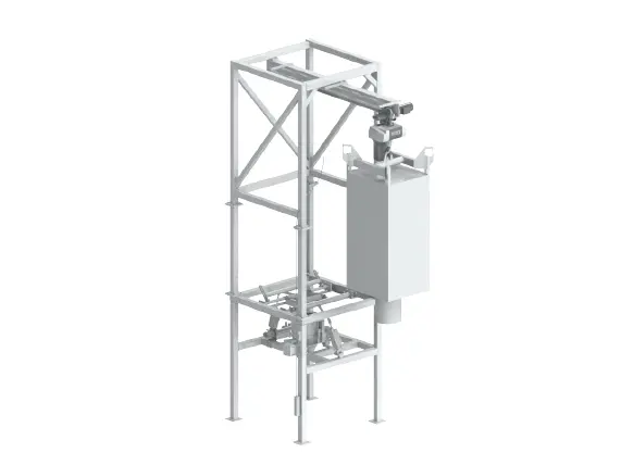 Staubfreies und bedienfreundliches Entleeren von Big-Bags aller Art, Andockung handbetätigt oder pneumatisch mit Spannvorrichtung. Optionen: Wippe und Walkrahmen als Austragshilfe, Vorlagebehälter, Dosiergerät, Big-Bag-Aufgabe mit Kran oder Gabelstapler.