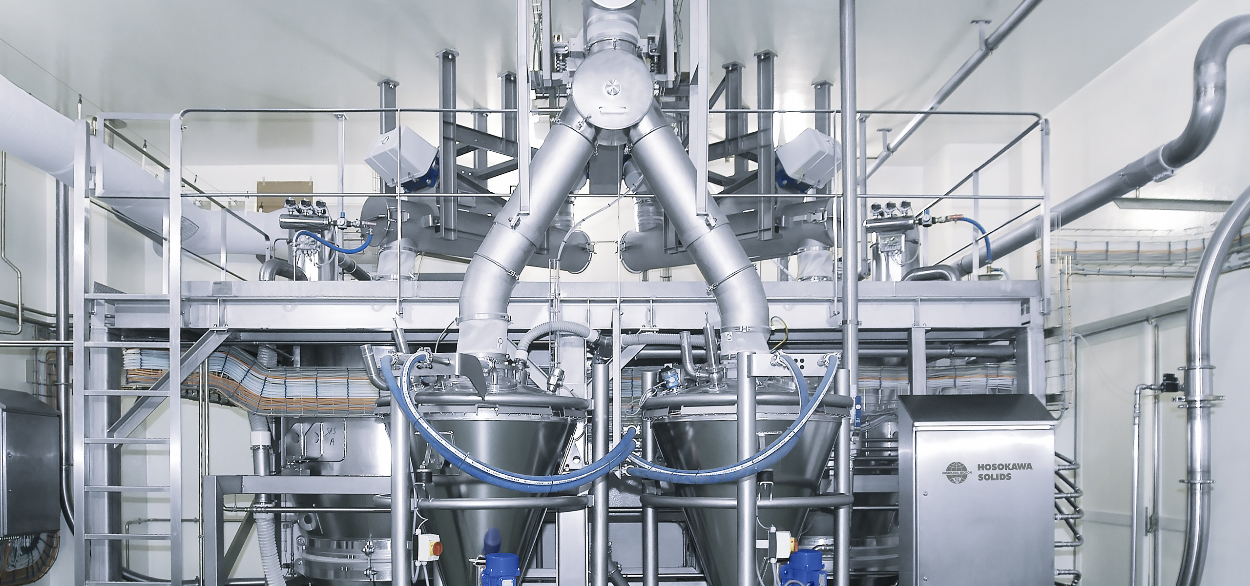 Die Pneumatische Förderung wird mit den folgenden Hosokawa Solids Solutions Komponenten für die Druck- und Saugförderungen realisiert: Pneumatische Sender (Gefäß-Förderung), Durchblasschleusen (Schleusen-Förderung), Taktsaugfördergeräte Vacu-Fill (Vakuum-Förderung), Weichen und Förderleitungsteilen. Sie werden sowohl in der Schwer-Industrie in Normalstahl als auch in der Fein-Chemie-Branche in Edelstahl eingesetzt.