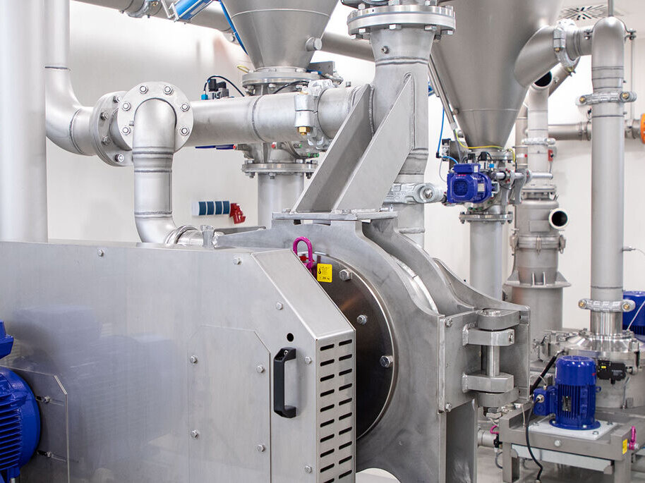 - Feinprallmühle mit Stiftscheiben - integriert in einen druckstoßfesten Edelstahlbehälter