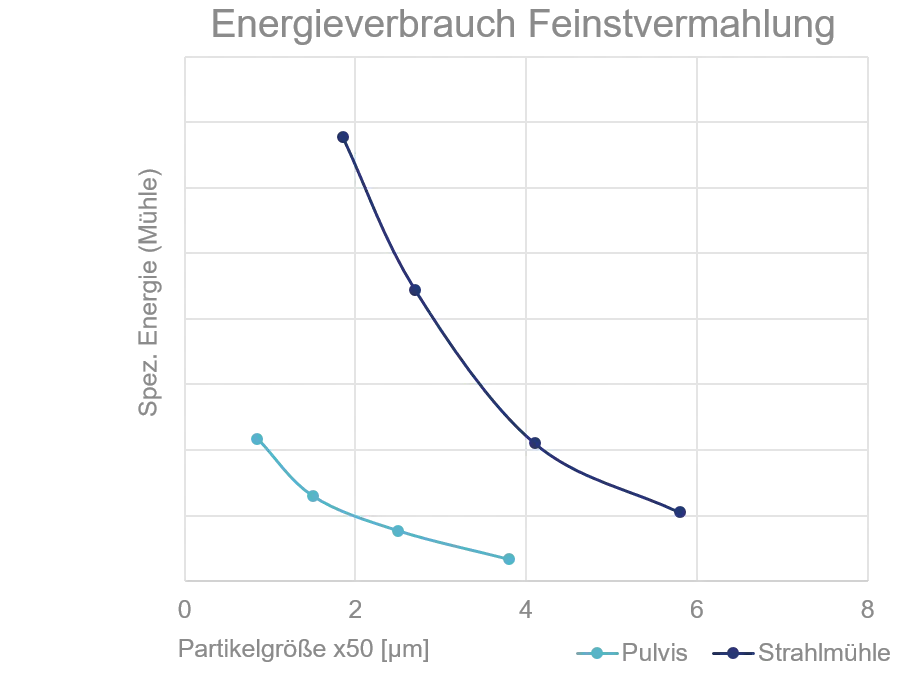 Energieeffizient: Dank der sehr hohen Mahleffizienz wird der spezifische Energieverbrauch bis zu 80 % reduziert. Es sind höhere Feinheiten als bei der Strahlmahlung umsetzbar.