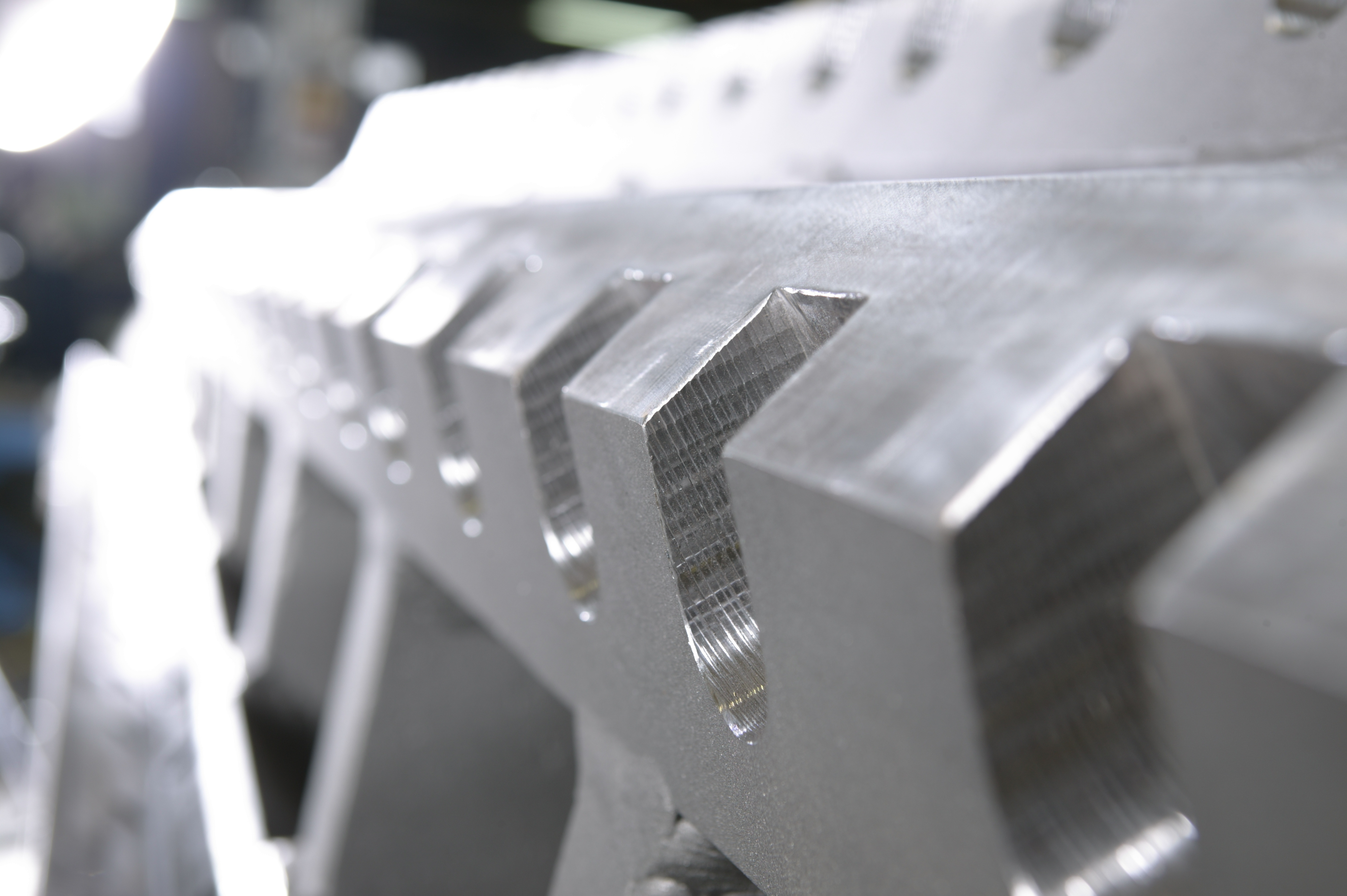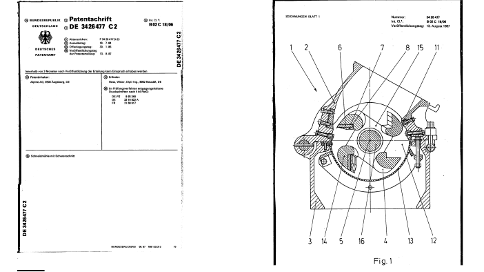 1984: Weiterentwicklung mit patentiertem Kreuz-Scheren-Schnitt (geringere Lastspitzen und gleichmäßiger Verschleiß)