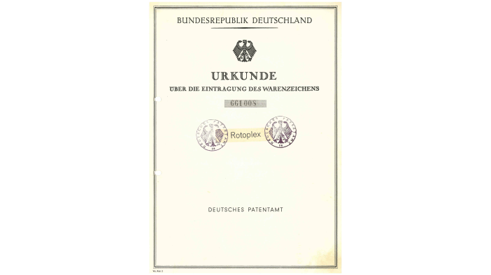 1954: Die erste Maschine mit horizontalem Rotor wurde konstruiert und der Name Rotoplex erstmals als Marke angemeldet