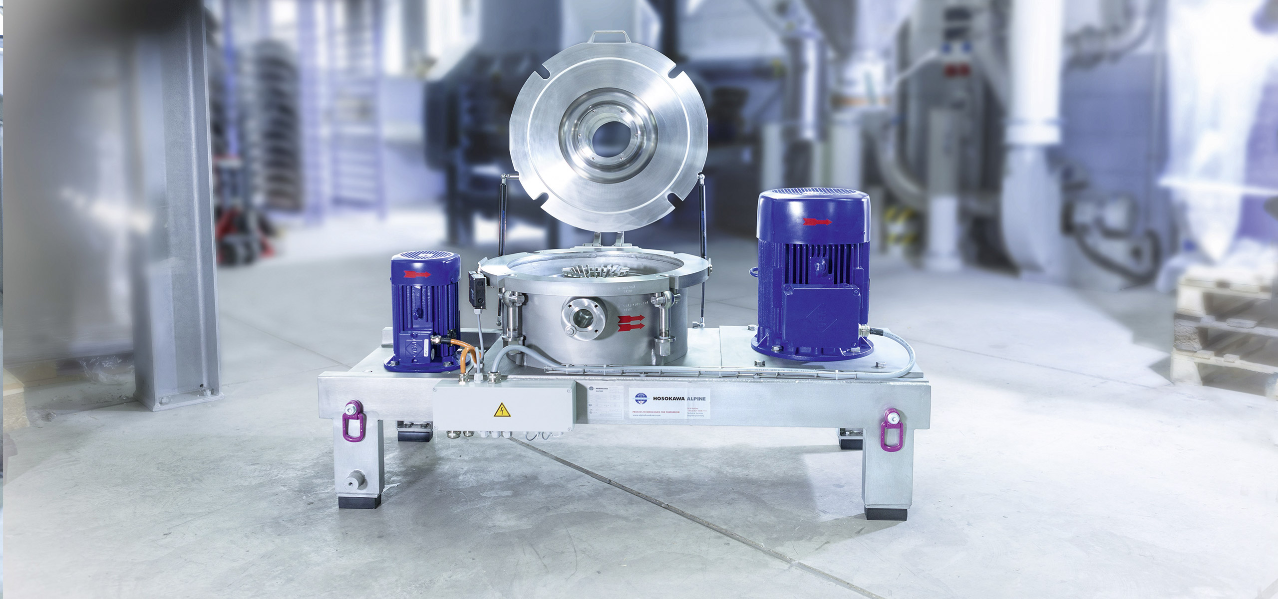 ACM CX - mit koaxialer Anordnung der Sichter- und Mahlscheibenantriebswellen, was einen vertikalen Produktaustritt ermöglicht und Produktanbackungen verhindert.